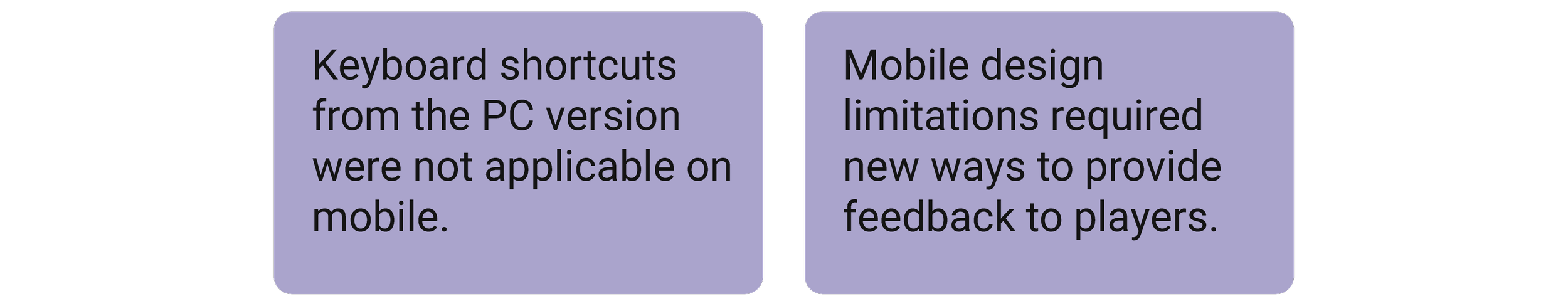 When the programmer started to transition the game to mobile, we noticed the following issues: