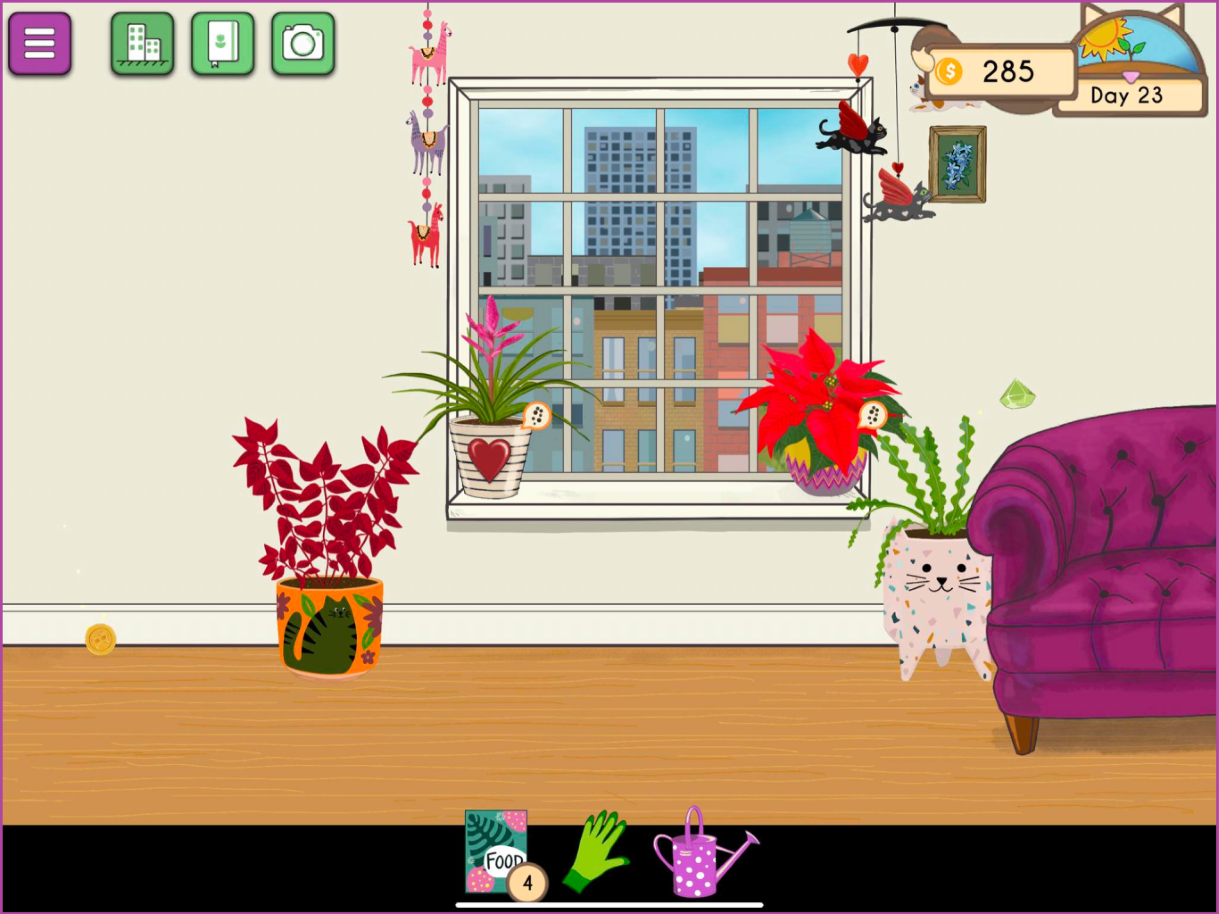 Plant Therapy: NYC Edition features a cozy mobile game in which players can decorate their New York City apartment with plants, art, and more. By watering, fertilizing, and growing plants from sprouts, players can earn coins and unlock achievements.