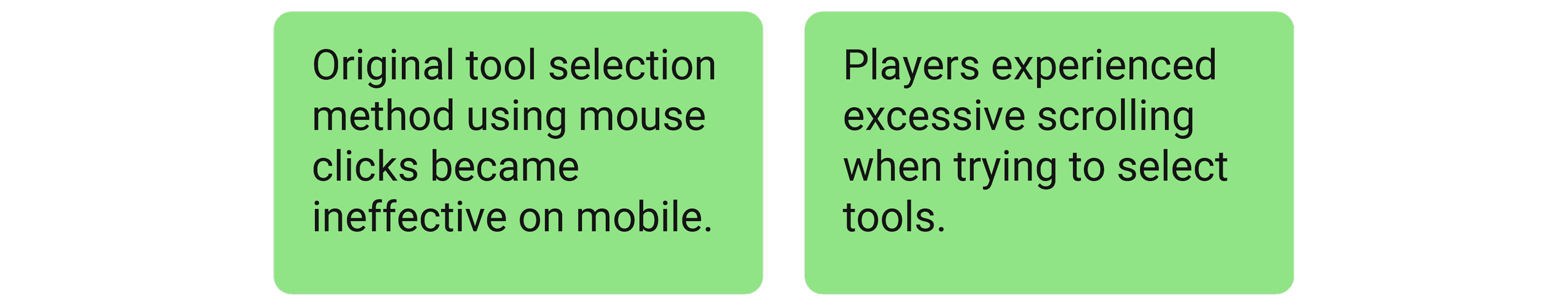 On the PC version, players could easily select tools from a tool stand with a mouse click. However, the mobile version's smaller screen and touch controls resulted in excessive scrolling, making tool selection tedious and disrupting gameplay flow.